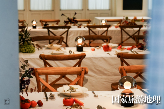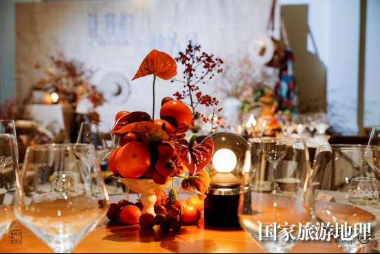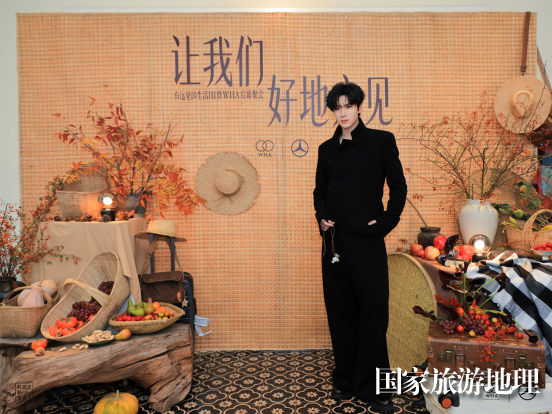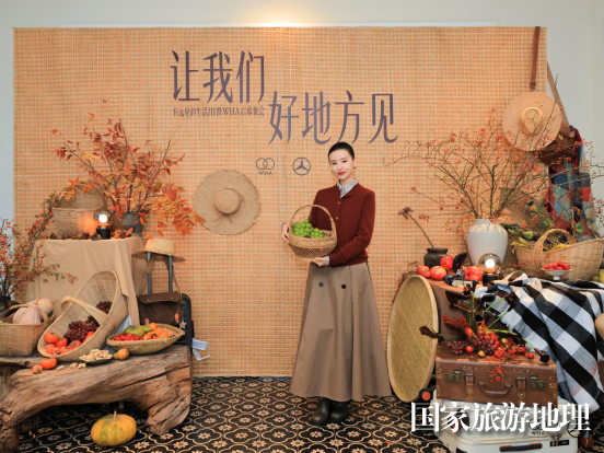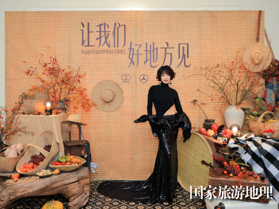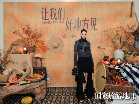 晚宴現(xiàn)場(chǎng),“讓我們好地方見(jiàn)”的背板裝置立于中餐廳中央,懸掛竹籃、草帽等在地農(nóng)具,點(diǎn)綴飽滿(mǎn)的時(shí)令瓜果與花藝,營(yíng)造出溫暖的豐收質(zhì)感,吸引了董潔、金晨、宋茜、展軒等藝人嘉賓駐足留念,共聚星光。
